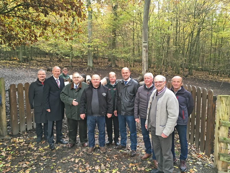 Vergangene Woche informierte sich Bundestagsabgeordneter Bernd Siebert über das Projekt des Basdorfer Hutewaldvereins. Fritz Schäfer, VorsitÂzender und Kreislandwirt, erklärte, dass viele Besucher diese früher praktiÂzierte und ortsübliche Waldnutzung mit der im Eichenwald gehaltenen fast ausgestorbenen Schweinerasse sehen möchten. Der rund sieben ha große für den Hutewald genutzte Wald wurde dazu dem Verein vom LandesbeÂtrieb Hessen-Forst bereitgestellt. Damit sei sowohl ein touristisches Ziel für die Eder-Region geschaffen, als auch die Möglichkeit zur regionalen Vermarktung dieses Gourmet-Fleisches. Siebert freute sich über das EngaÂgeÂÂment und sagte: „Am Beispiel des Basdorfer Hutewalds zeigt sich, wie private Initiative und regionale Identität gelingen können. Das Bild zeigt MitÂglieder des CDU-Gemeindeverbandes Vöhl mit Bernd Siebert, MdB, Kreislandwirt Fritz Schäfer sowie Armin Schwarz, Vorsitzender des Kreisverbandes Waldeck-Frankenberg, Bürgermeister Matthias Stappert und Forstamtsleiter Dr. Gero Hütte von Essen.
