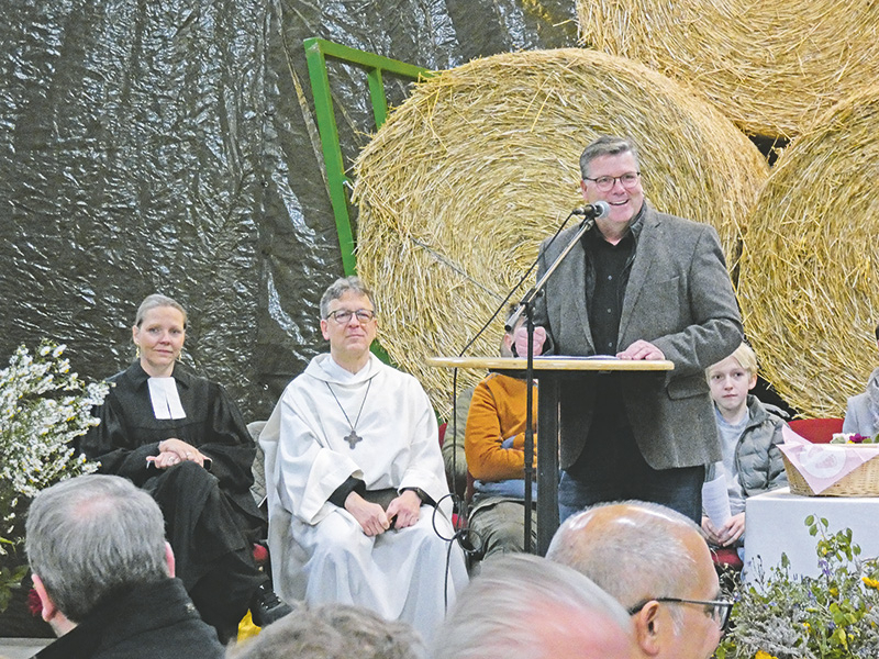 In seiner Ansprache zeigte sich Gastgeber Dieter Schlotter sichtlich bewegt. „Ich habe schon viel erlebt in dieser Halle“, sagte er, „Feste, Begegnungen – sogar eine Schlepper-Taufe.“ Doch erstmals einen Gottesdienst feiern zu dürfen, sei für ihn etwas ganz Besonderes. Er betonte, wie sehr er die Arbeit der Landwirte schätzt und wie wichtig es sei, ihre Leistungen nicht nur wirtschaftlich, sondern auch gesellschaftlich zu würdigen.