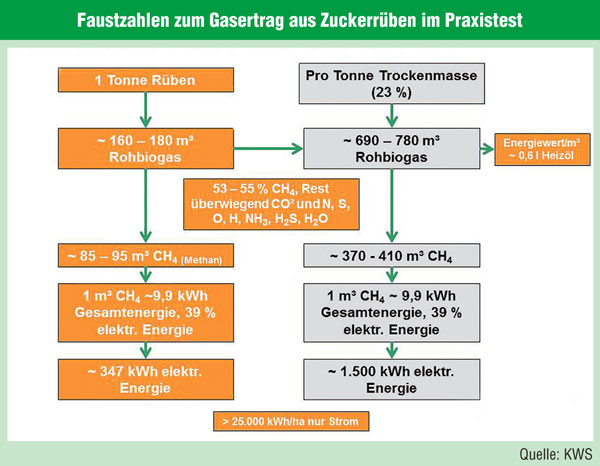 Derzeit wird die Biogasanlage mit etwa 10 bis 15 Prozent Rübensubstrat zusätzlich zu überwiegend Silomais und Ganzpflanzensilage gefüttert. In der nächsten Zeit soll der Rübenanteil weiter gesteigert werden. Eine Schaumbildung war nicht zu erkennen.